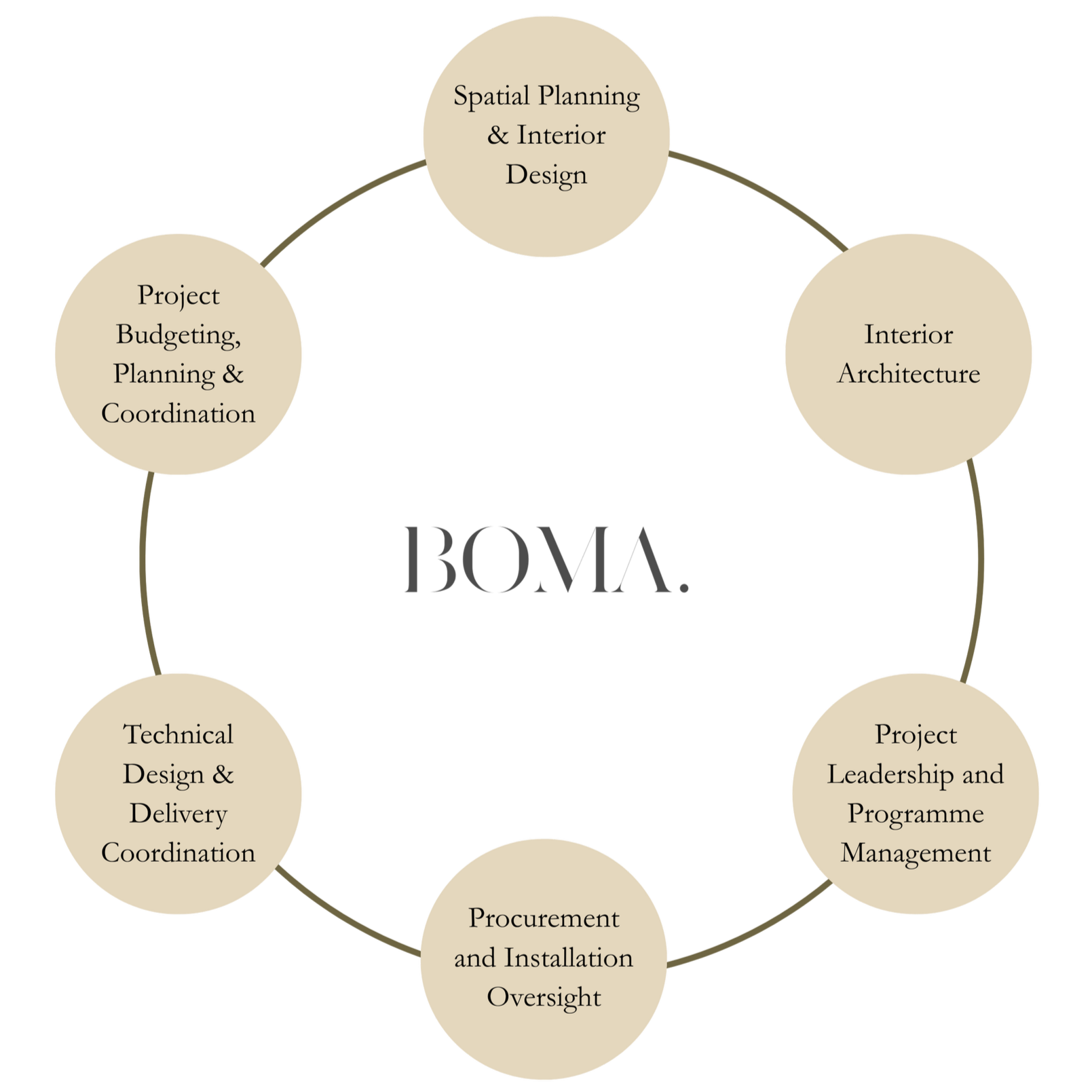 BOMA manages projects from the earliest stages, guiding ideas from initial design thinking through to detailed technical resolution and delivery. Design concepts, architectural drawings and schedules are developed in-house, allowing every element to be considered from the outset and ensuring clarity, coordination and continuity throughout the process.